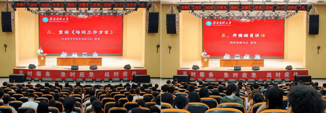 仪式在雄壮的国歌声中正式启幕。廖荣宣读培训工作方案,系统介绍培训目标、课程设置、实践环节与考核评价体系,明确将党的创新理论、红医精神等融入全过程,着力培养政治坚定、本领过硬、作风优良的青年政治骨干与合格共青团员。青马工程培训班学员代表汪紫梦、入团积极分子培训班学员代表黄锦辉先后发言,表态将珍惜学习机会、坚定理想信念、勤学善思笃行,以青春担当传承红医薪火、践行时代使命。