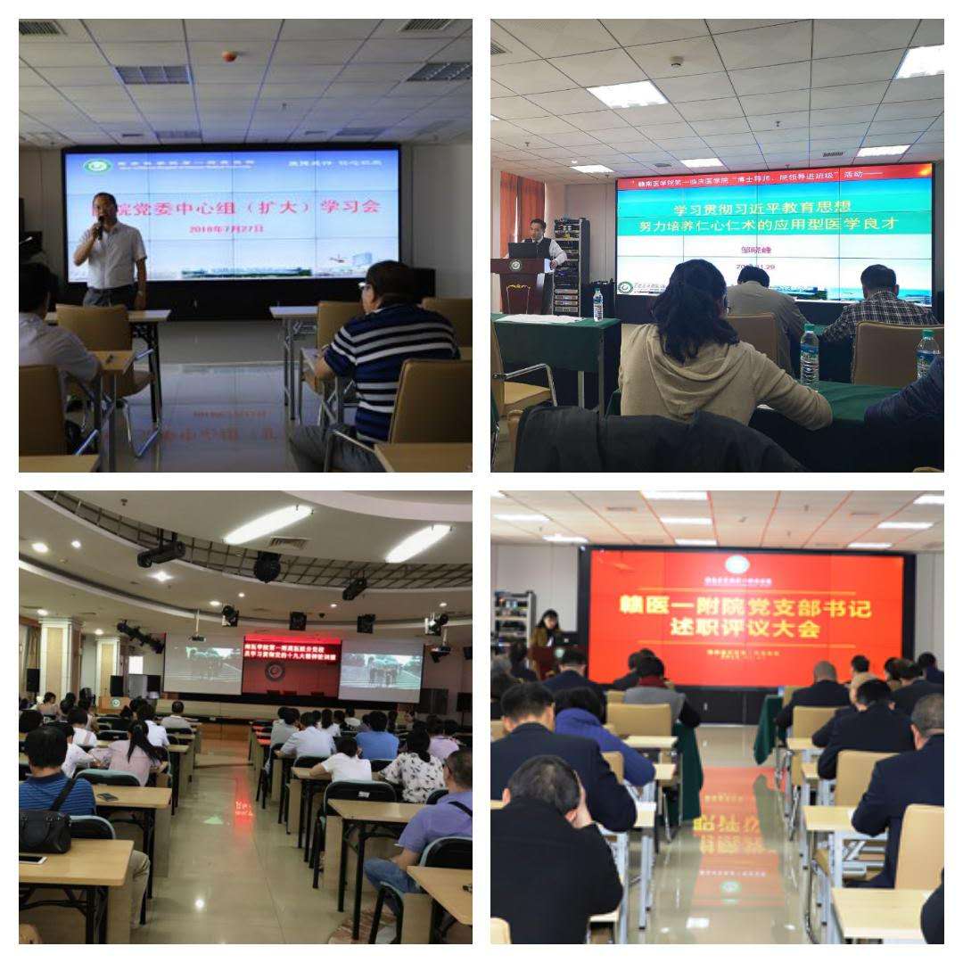 该院党委有计划有主题召开党委中心组学习会,组织举办了3期十九大精神培训班,做到了全院党员学习宣传十九大精神全覆盖;抓好“三会一课”、主题党日、民主生活会、组织生活会、党支部书记述职、党员民主评议等制度的落实,深入推进“两学一做”学习教育常态化制度化,进一步规范党内组织生活;积极组织开展“红色家书”手抄、品读交流、诵读比赛、参演晚会等系列活动,配合开展文明、卫生城市创建,教育引导党员干部和广大医护人员重温革命历史、缅怀革命先烈、传承红色基因,努力争当有信仰、有担当、有气节、有情怀的好党员、好干部、好医生、好护士,切实把理想和行动统一到办好人民满意医院的实际行动上来。通过多形式、多渠道的学习,进一步深化了全院干部职工对十九大精神的学、思、践、悟, 牢固树立“四个意识”,坚定“四个自信”,做到“两个维护”,坚持以发展为重,以事业为重,以团结为重,把智慧和力量凝聚到学校本科教学工作审核评估,凝聚到推进公立医院改革和促进医院快速发展的干事创业上来,奋力开创各项工作新局面。
