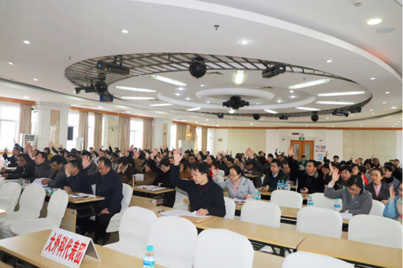 该院院长邹晓峰作了《改善医疗服务 强化内涵建设 提升管理水平 努力打造区域医疗中心》的工作报告。报告系统回顾了2018年该院在强化政治引领、提升医疗质量工程、强化人才队伍建设、树牢教学中心地位、推动学科建设和科研转化、改善群众就医体验、提升职工凝聚力等方面取得的成绩。报告指出,2019年要围绕打造现代化三级甲等教学研究型综合医院和区域医疗中心目标,落实公立医院党建工作新要求,实现党建引领新跨越;适应医院改革发展新形势,实现医院管理水平新跨越;适应医院人才需求新常态,实现人才队伍建设新跨越;适应医改发展新形势,实现改善医疗服务新跨越;适应科技创新新需求,实现科研平台建设新跨越;适应教学改革新常态,实现教学质量新跨越;适应医院文化建设新常态,实现凝聚发展合力新跨越。