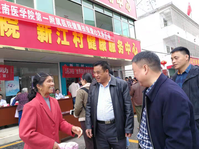 当天上午,该院党委副书记李良东带领呼吸内科、神经内科、消化内科、心血管内科、肾内科、内分泌科、风湿免疫科、泌尿外科等专家教授团队前往新江村进行健康扶贫义诊活动。专家们耐心向前来寻诊的群众询问病史、了解病情、制定诊治方案;细致讲解群众关心的疾病,对日常保健、常见病、多发病的预防和常用药服用等进行指导,并赠送了部分常用药品,赢得了乡亲们的高度赞赏。