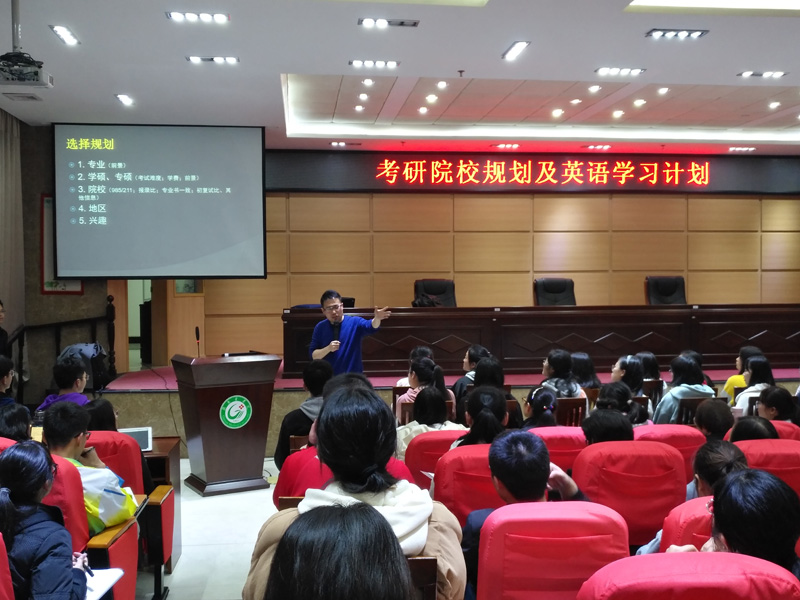 3月27日和28日,由学校图书馆主办,新东方在线数据库承办的“考研院校规划及英语学习计划”讲座在同学们的期待中举行。应同学们要求,讲座分别在黄金校区和章贡校区举行了两场,场场座无虚席,场面火爆。