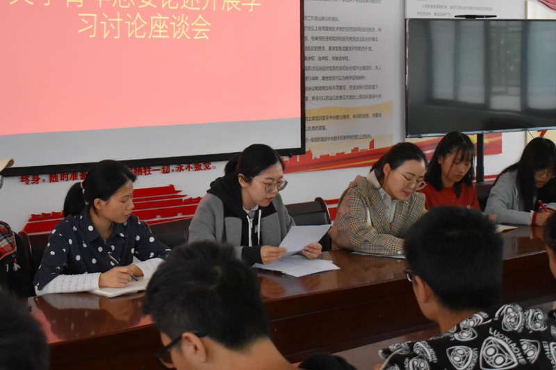 王静雅首先带领大家一起学习了习近平总书记重要讲话,特别是对五四运动的历史意义及时代价值的重要论述和提出的对新时代青年的六个要求;同时学习了省委书记刘奇在纪念五四运动100周年江西各界青年代表座谈会上的讲话精神。