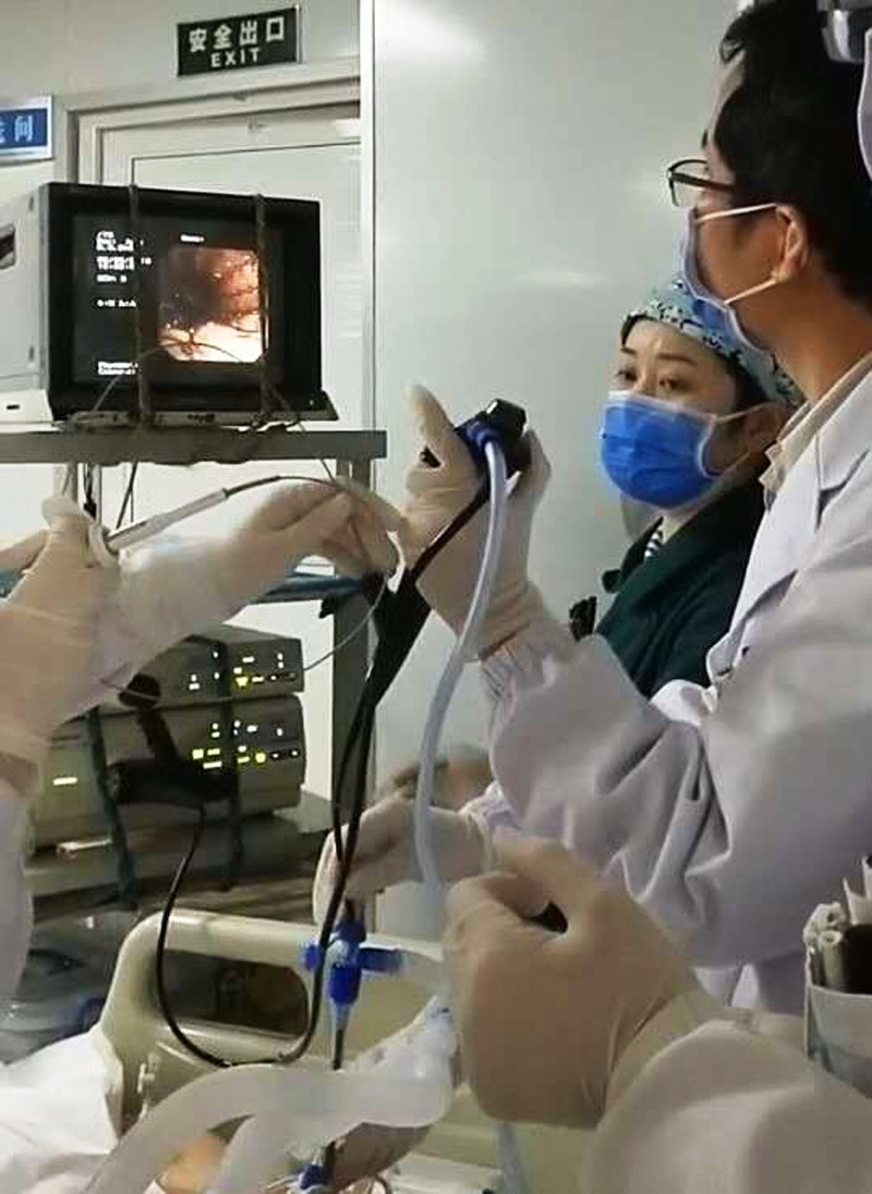 5月8日下午,李杰带领介入治疗小组为患者顺利完成电子支气管镜下覆膜气管支架植入术。术后患者气道梗阻症状明显改善,顺利拔除气管插管,并于次日转回普通病房。
