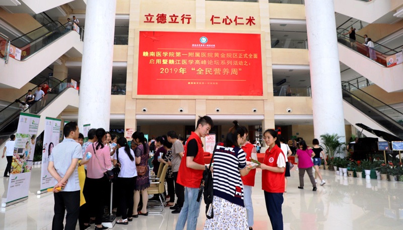 5月12日至18日是2019年“全民营养周”,为促进群众“合理膳食”和“吃动平衡行动”健康生活观念与方式的形成,5月14日和15日,我校一附院组织院内及市内兄弟医院营养师共10余人在该院黄金和章贡两个院区开展全民营养周宣教活动。
