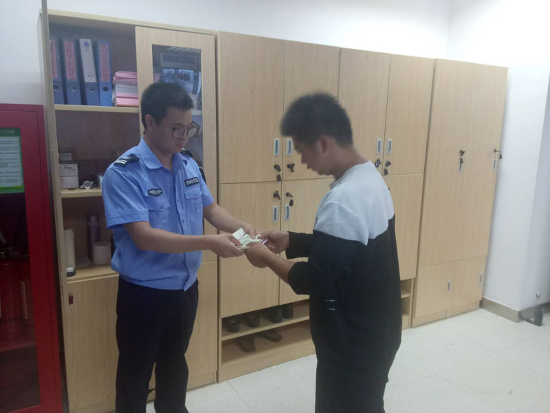 保卫科监控中心工作人员当即通过视频追踪了解两院区穿梭巴士等情况,同时启动两院区广播循环播报寻物启事(由于丢失现金地点在该院穿梭巴士等候区附近,失主有可能乘车前往章贡院区),并交代值班安保人员留意是否有人遗失现金等措施寻找失主。通过各方不懈努力,当天下午13点找到失主,核对身份信息确认无误后,将现金物归原主。