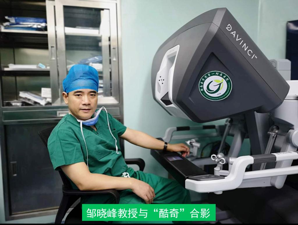 9月4日,由泌尿外科专家、一附院院长、泌尿外科学科带头人邹晓峰主刀,运用最新一代达芬奇(Xi)手术机器人联合邹晓峰团队在国际上首创的耻骨上辅助经脐单孔腹腔镜手术(SA-LESS)技术,成功施行两例耻骨上机器人辅助经脐单孔腹腔镜肾癌根治术(即机器人辅助下耻骨上辅助经脐单孔腹腔镜肾癌根治术,RA-SA-LESS-RN)。