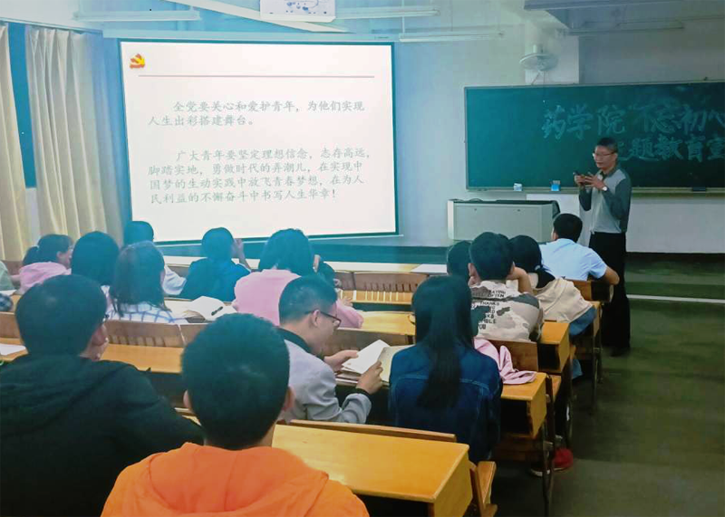 10月17日晚,药学院党委委员、副院长赖日勇以《不忘初心,牢记使命,争做德技双馨良才》为题开展了“不忘初心,牢记使命”主题宣讲。药学院学生党员、学生干部代表、教工第三党支部党员参加。