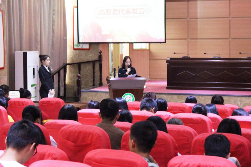 优秀志愿者代表吴杨娜同学上台介绍述了自己志愿服务情况以及感想。