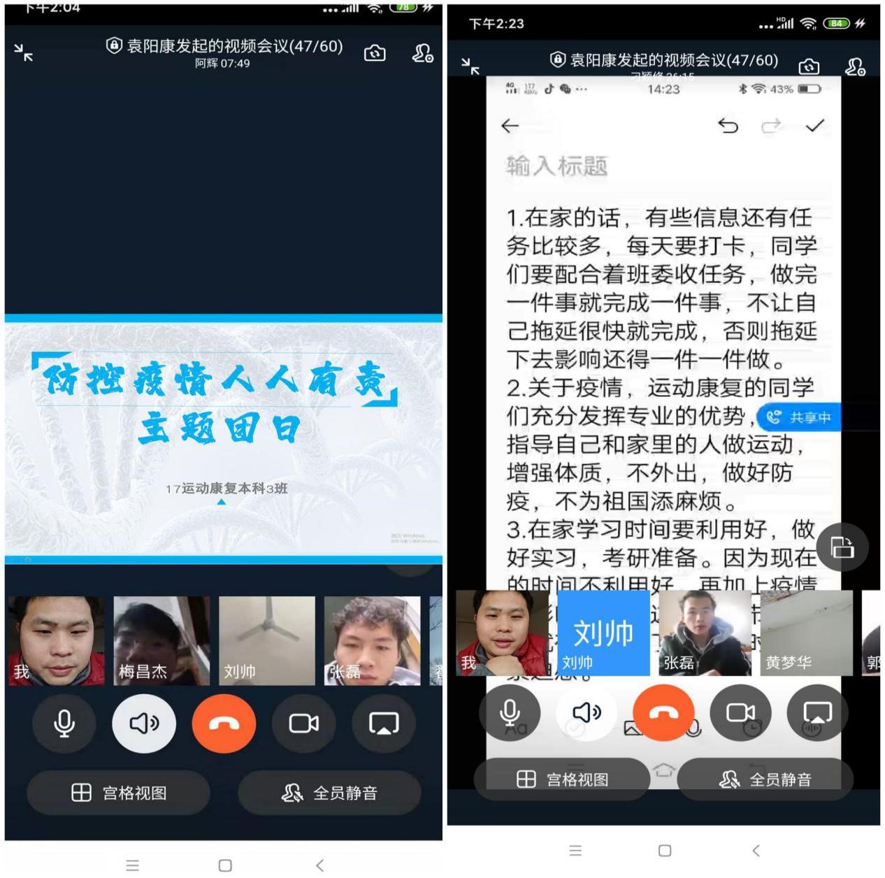 在康复学院2017级运动康复专业本科3班团支部线上主题团日活动中,班主任结合专业优势,鼓励同学们在坚定理想信念,做好个人防护,不传谣、不信谣、不造谣,坚持体育锻炼的同时利用居家时间认真学习专业知识,扎实提升专业技能,积极向家人和身边朋友倡导和传授健康科学的居家锻炼方式。
