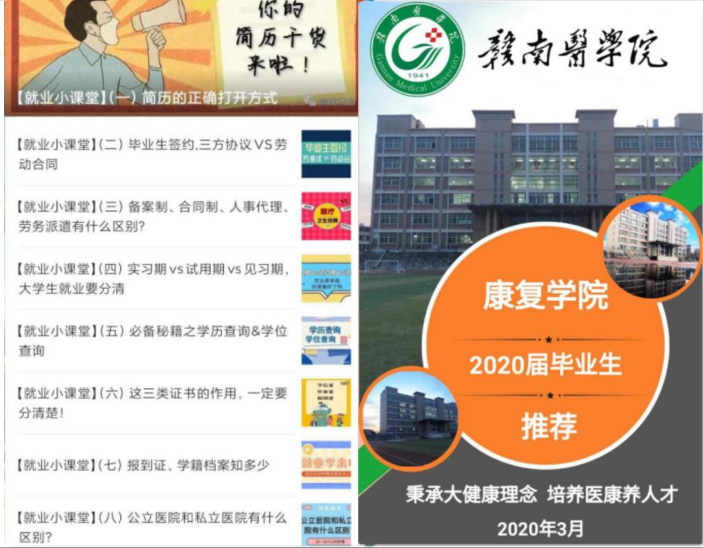 创新工作方式。该院利用线上H5平台推荐毕业生就业,取得了良好效果,得到用人单位的好评。通过学校就业信息网、校友微信平台、毕业生微信群等途径搜集并推送就业信息,截至目前共发布就业相关的推送18篇,推荐就业单位191家,就业岗位约600个;针对调查问卷统计结果,该院通过微信公众号制作了《就业小课堂》系列推送,对毕业生就业过程的十个常见问题进行了详细的分析和解答。受到毕业生和学校相关部门的高度评价。