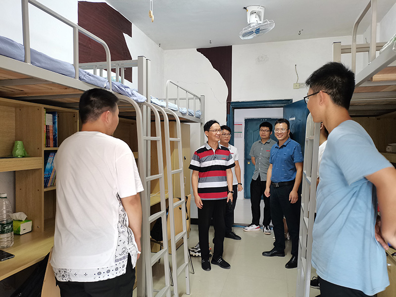 9月6日,基础医学院党委书记颜剑、党委副书记刘志春带队走访2021级新生宿舍,深入了解新生宿舍基本设施和安全保障情况,并向同学们送去新学期的问候。
