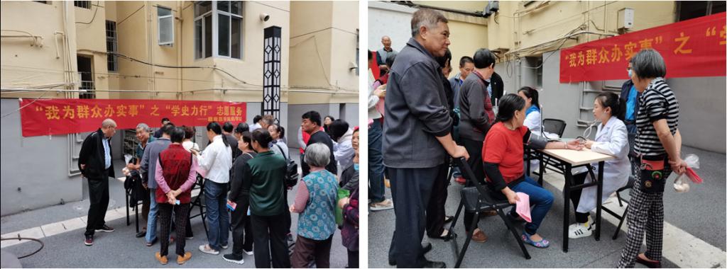 活动中,大家与老人亲切交谈,详细了解老人的日常生活和身体情况,赠送鸡蛋、食盐、口罩等生活防疫物资,向他们宣传宣讲健康养护知识,嘱咐他们保重身体,适时添衣保暖,并送上重阳佳节美好祝福。此外,志愿者结合专业所学,现场为有需要的老人测量血压。