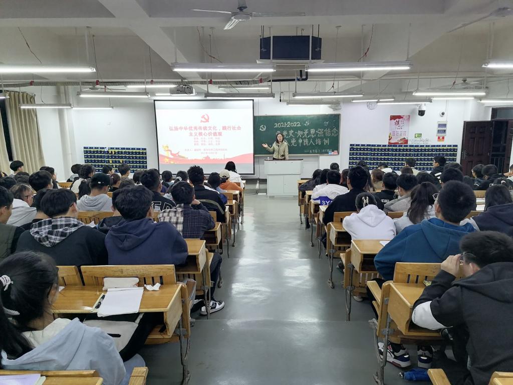 10月21日晚,医学信息工程学院院长盛瑶环为入党申请人开展社会主义核心价值观专题辅导,该院学工办辅导员、培训学员240余人参加培训。