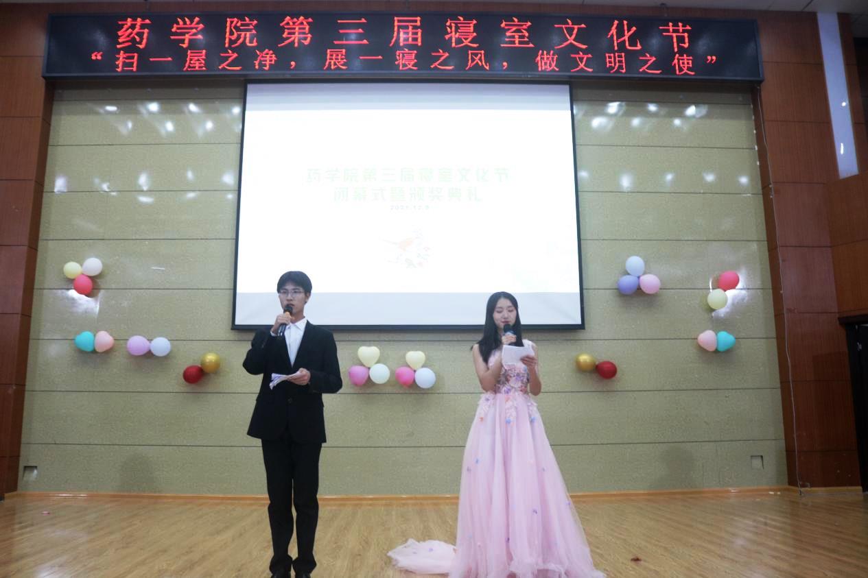 12月8日晚,药学院在黄金校区举办“扫一屋之净,展一寝之风,做文明之使”为主题的寝室文化节活动,该院院长范小娜、副院长丁治春及师生代表300余人参加。