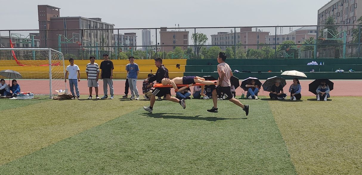 “趣味接力赛”则是运动会的重头戏。以班级为单位派出代表参赛,沿着比赛既定路线,快速完成对队友的正确包扎以及抬担架行进等医学操作,在不违反规则前提下,用时最短者胜。