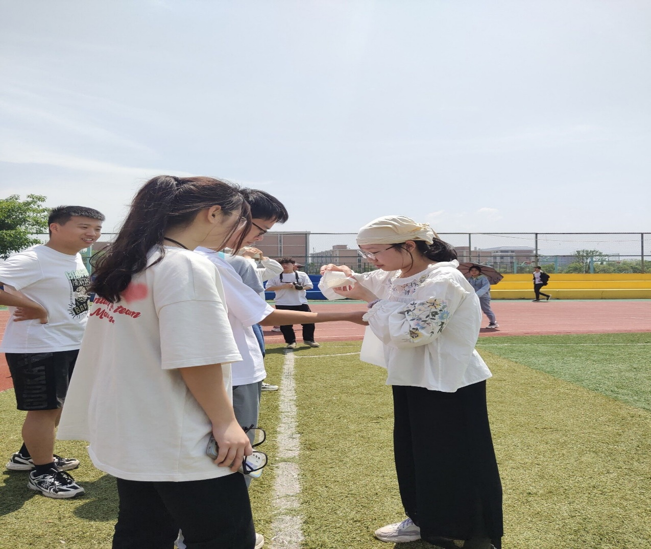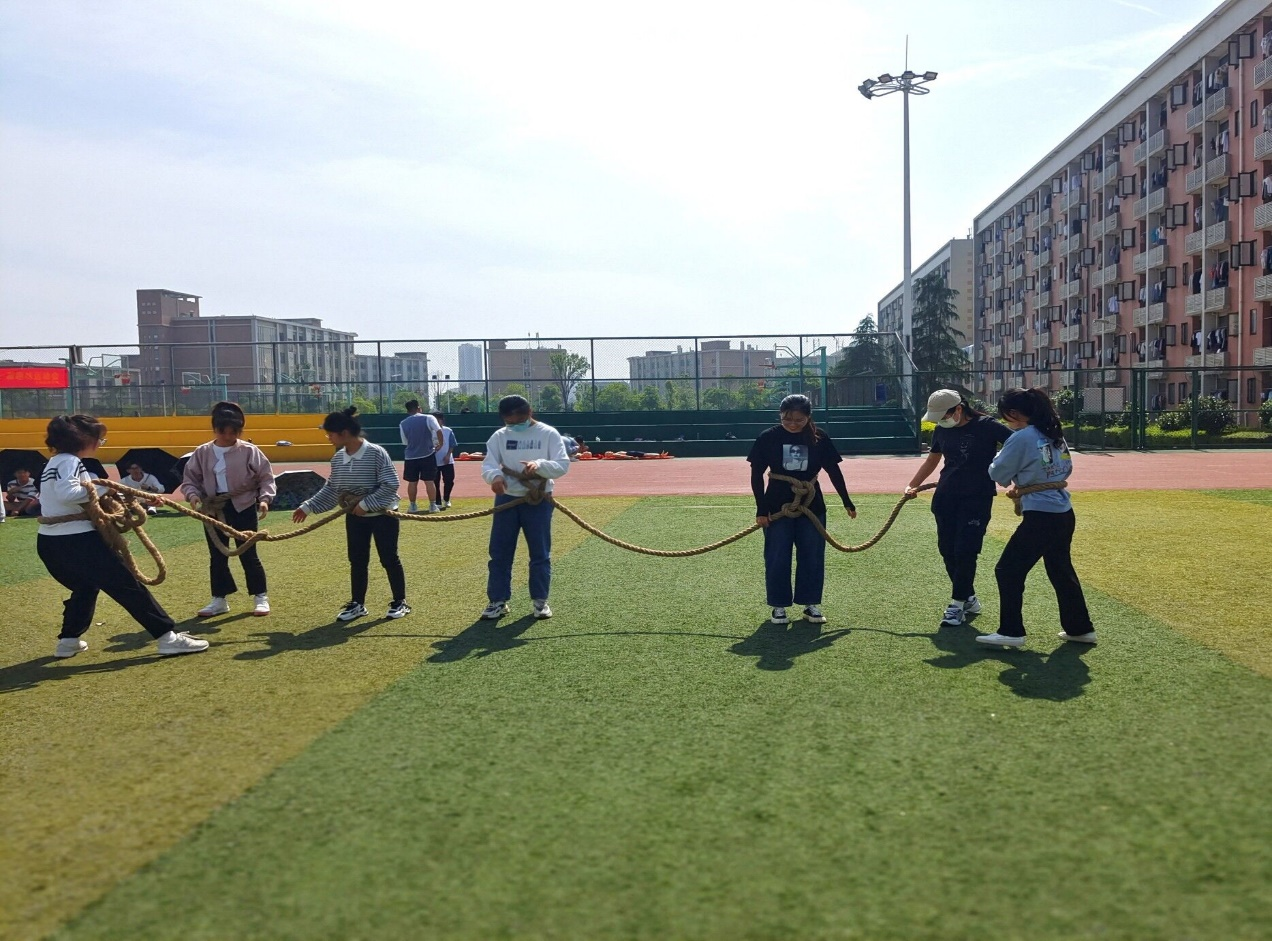 师生们组成1个教工队和5个学生队,饶有兴致地参与到“趣味打结”“趣味接力赛”“蛟龙出海”等比赛项目中,这些项目都与医学急救技能相关。